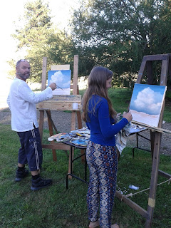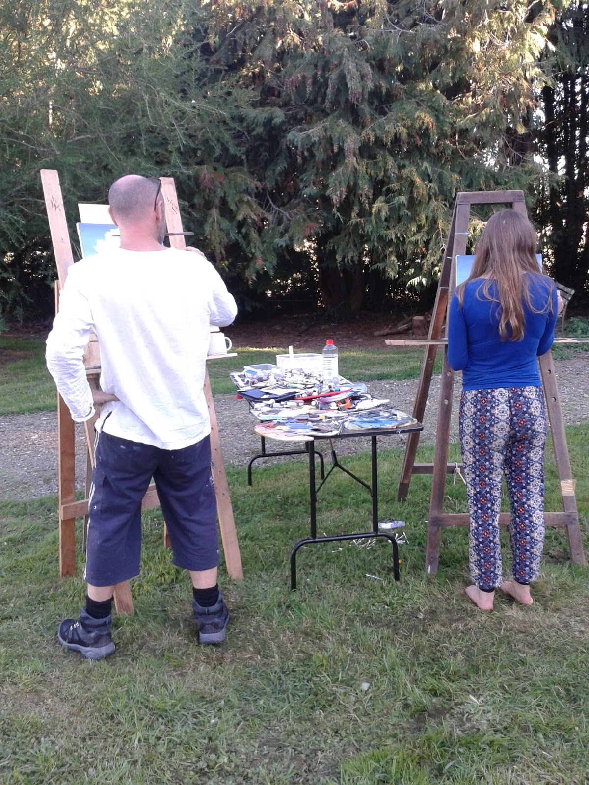 View out my window at NZ Pacific Studio : Laurence and Kristin trying to paint "translucent" light.